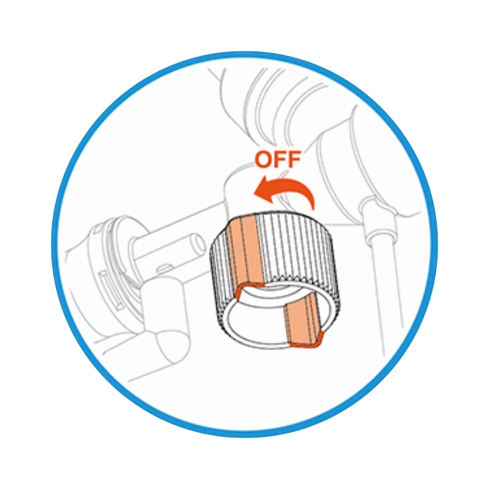 ● Khi van cách ly ở vị trí “OFF” buồng rửa được đóng kín 100%, giúp lành sạch hiệu quả hơn và ngăn nước muối rửa trôi ngược vào khí quản bệnh nhân